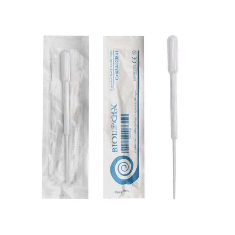 - Pipetas Pasteur Graduada em Polietileno, marca BIOLOGIX, fabricado em Polietileno de alta qualidade, com parede uniforme, Transparente, nas capacidade de 1 e 3 ml, embalagem com 500 peças;