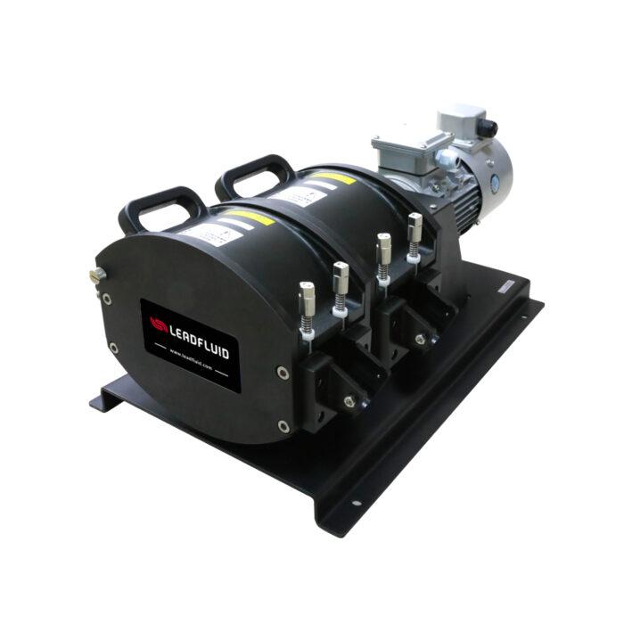 A bomba peristáltica de transferência em lote Lead Fluid JP301S é adequada para aplicações industriais. A vazão máxima de um único canal é de 33 L/min sob pressão normal e a pressão máxima é de 0.3 Mp. Estrutura compacta e razoável, fácil de instalar o tubo. Os roletes adotam transmissão por engrenagem planetária, segura e confiável, e prolonga a vida útil do tubo.