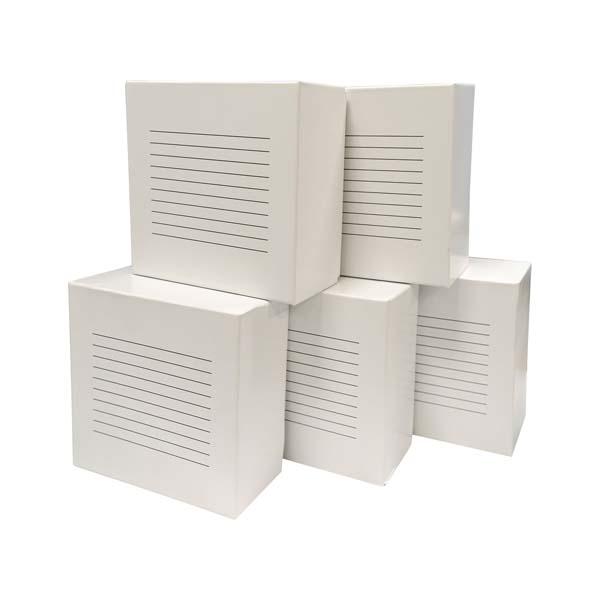 ● Fabricada em papelão (fibras) tratado e recoberto com papel branco especial;